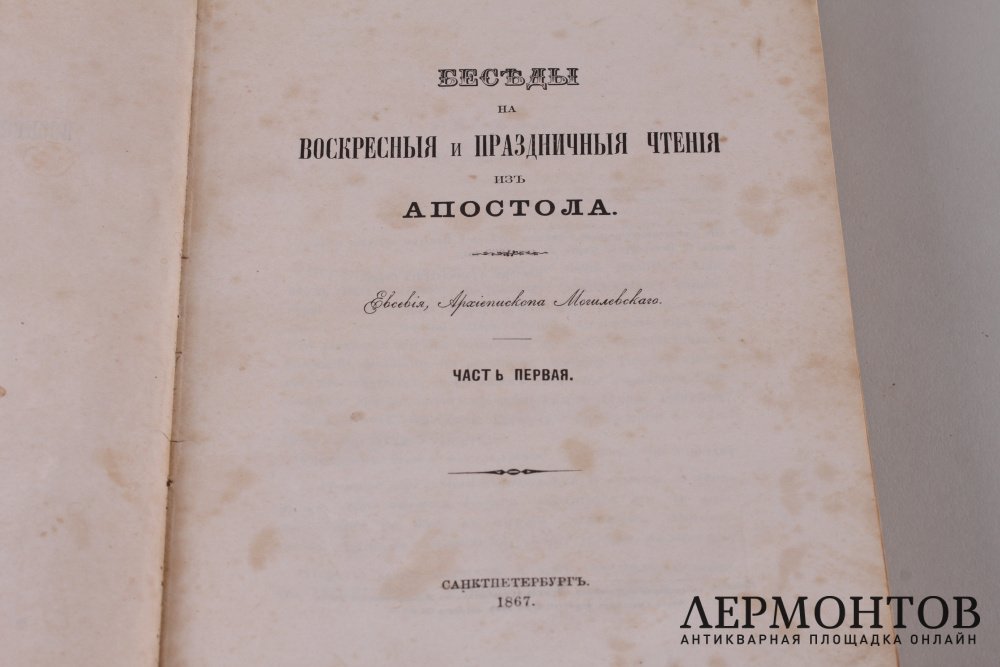 Беседы на воскресные и праздничные чтения из Апостола. Евсевия, архиепископа Могилевского. В 2 частях. Часть 1.Санкт- Петербург. Типография духовного журнала "Странник" 1867 год.