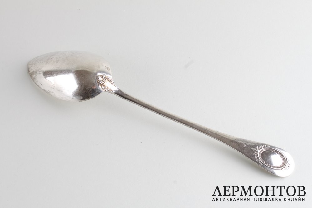 Большая сервировочная ложка для рагу, изготовленная из серебра 950 пробы во Франции во второй половине XIX века. Сохранена в отличном состоянии.