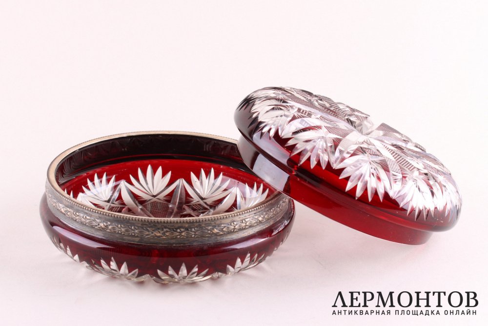 Антикварная бонбоньерка из хрусталя и серебра 950 пробы, изготовленная во Франции в конце XIX века.