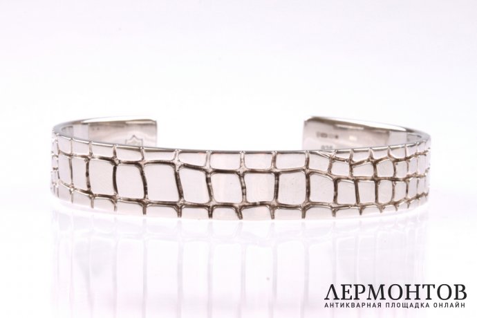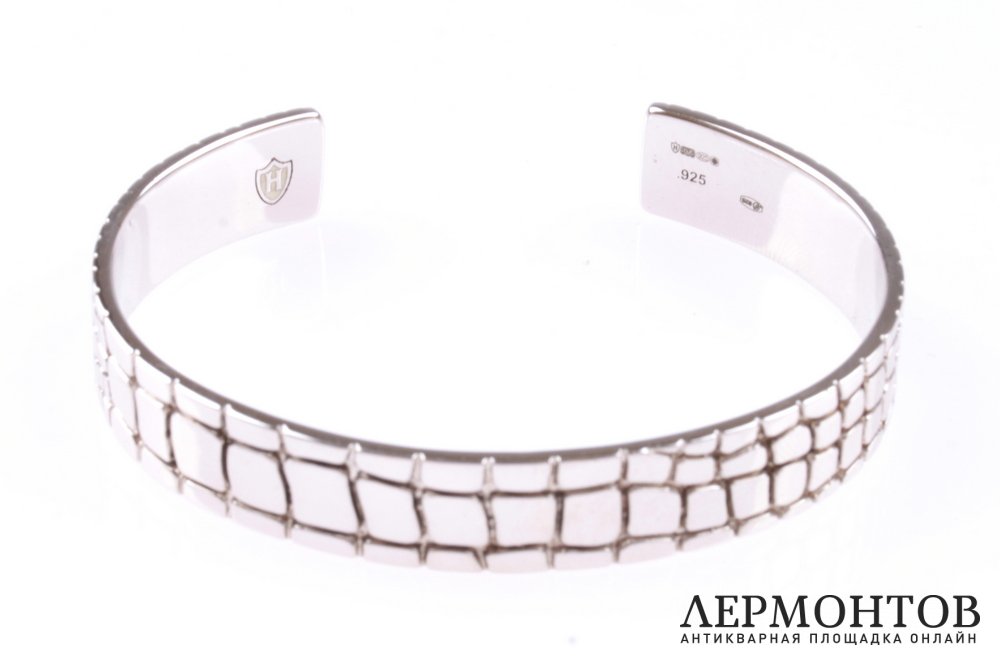 Браслет известной компании Hoxton London. Изготовлен из серебра 925 пробы. Декорирован орнаментом в виде крокодиловой кожи. Замечательный подарок!