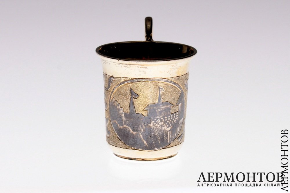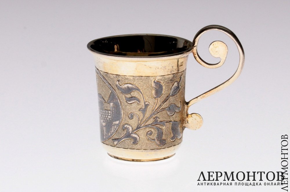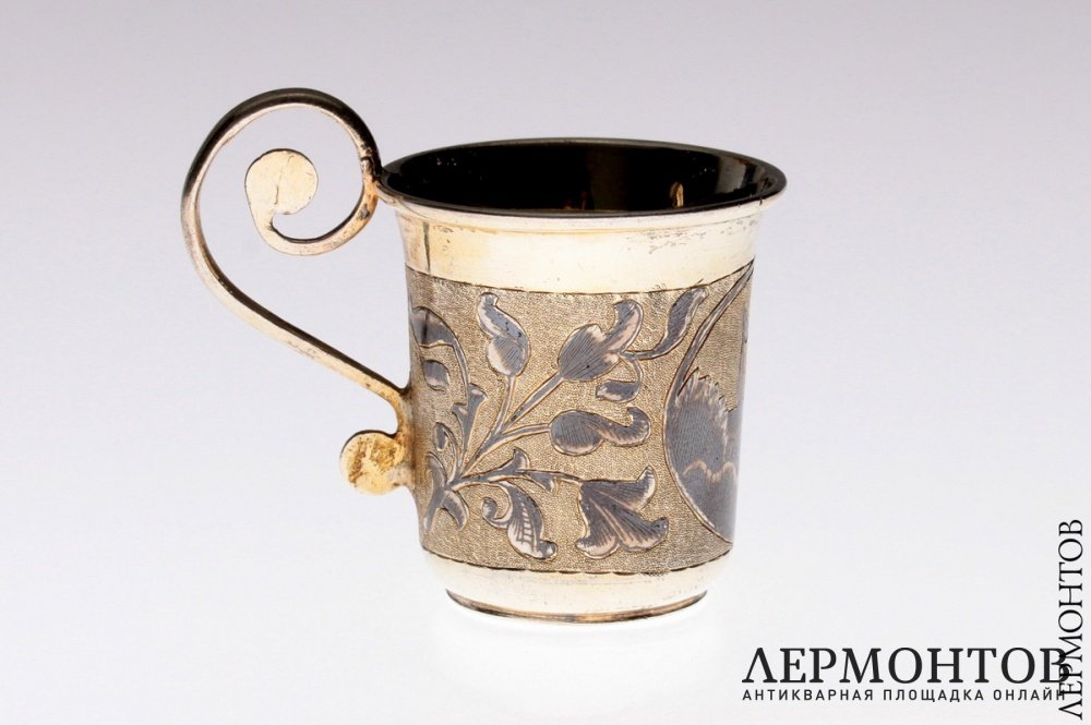 Редкая чашка с черневым узором и позолотой. Изготовлена из серебра 84 пробы в Москве в мастерской "АК", предметы которой представлены в ГИМ. Сохранена в хорошем состоянии. Замечательный подарок!
