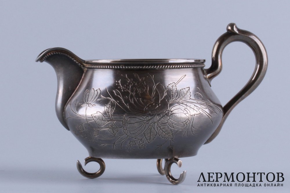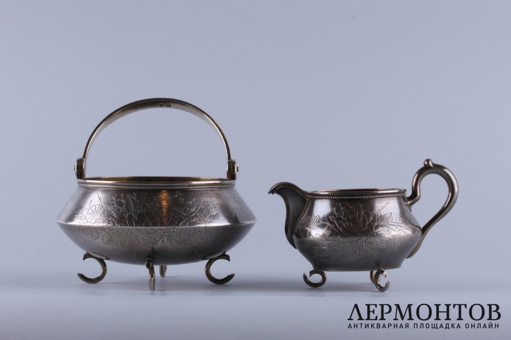 Чайный набор из серебра 84 пробы в стиле модерн, состоящий из сахарницы и сливочника, изготовленный в мастерской Александра Иосифовича Фульда в Москве в 1899-1908 годах.
