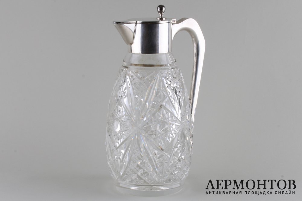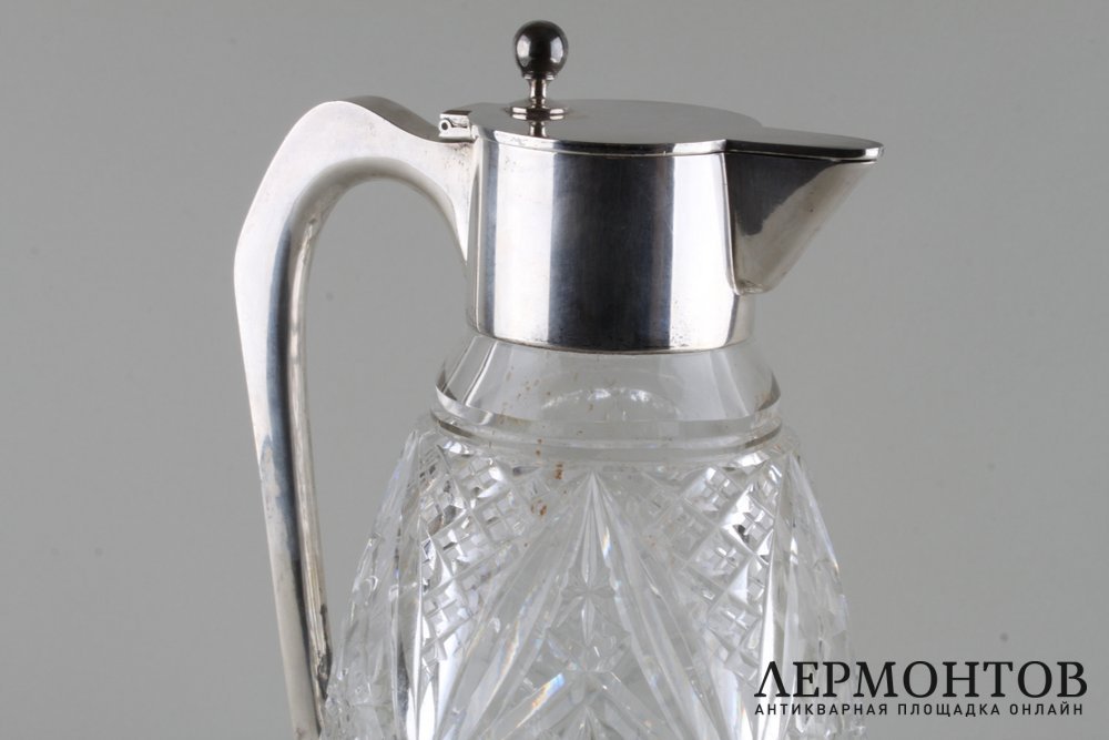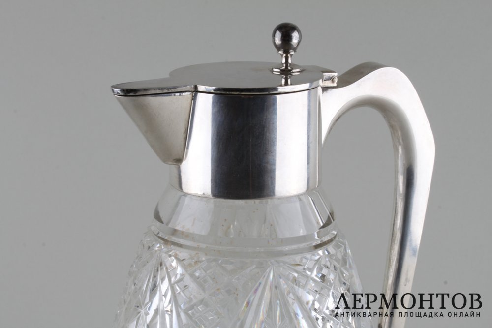 Графин для воды и вина, изготовленный из серебра 800 пробы и хрусталя в Германии в начале XX веков. Выполнен в классическом стиле. Сохранен в отличном состоянии.