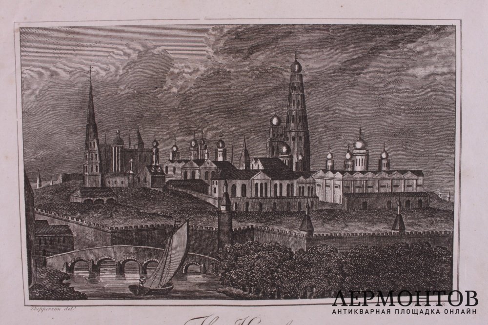 Антикварная гравюра "Москва. Вид на Кремль" / Moscow. The Kremlin.