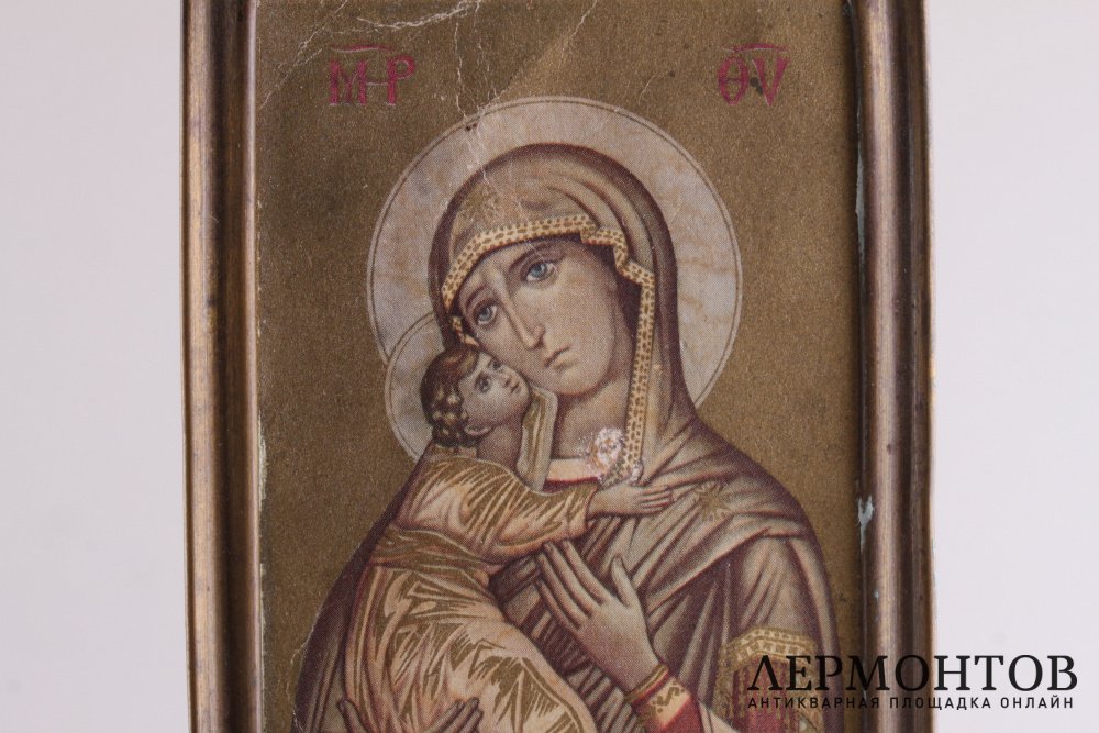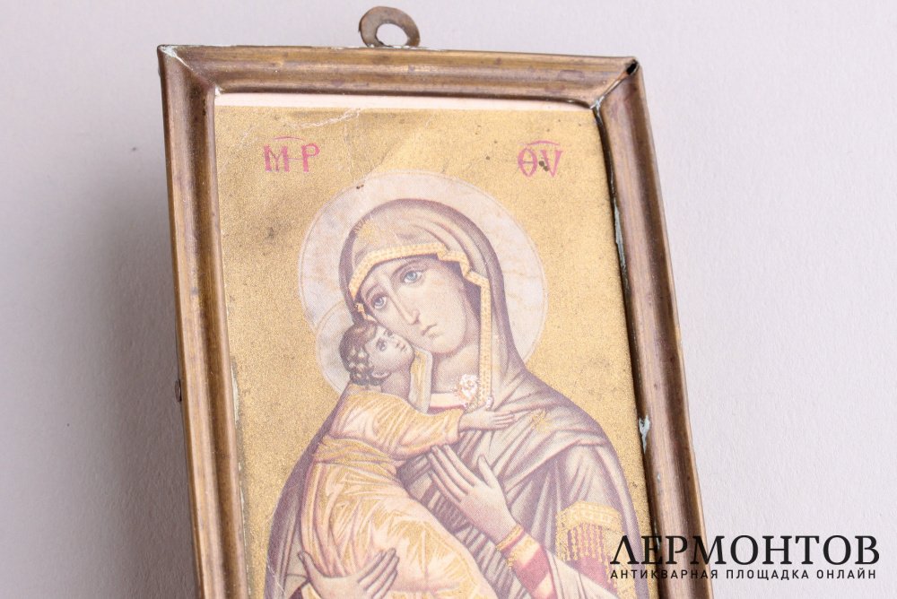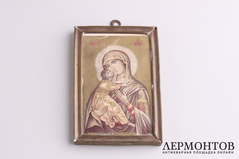 Икона Богоматери "Владимирская" Литография в латунной раме.6 х 9,5 см.