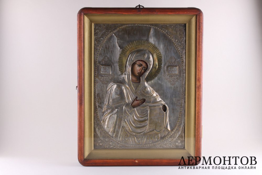 Икона Богородицы "Боголюбская". В деревянном киоте. Размер с киотом 55х43 см.