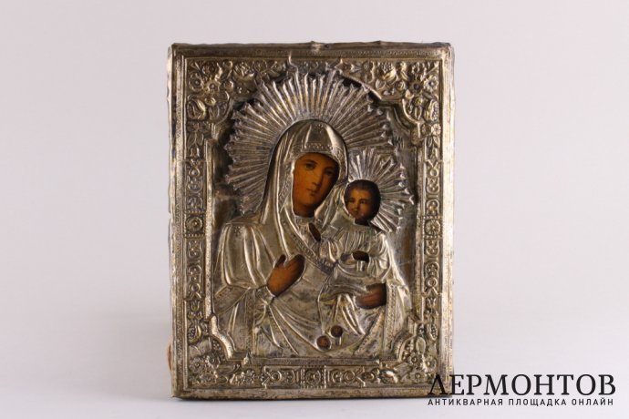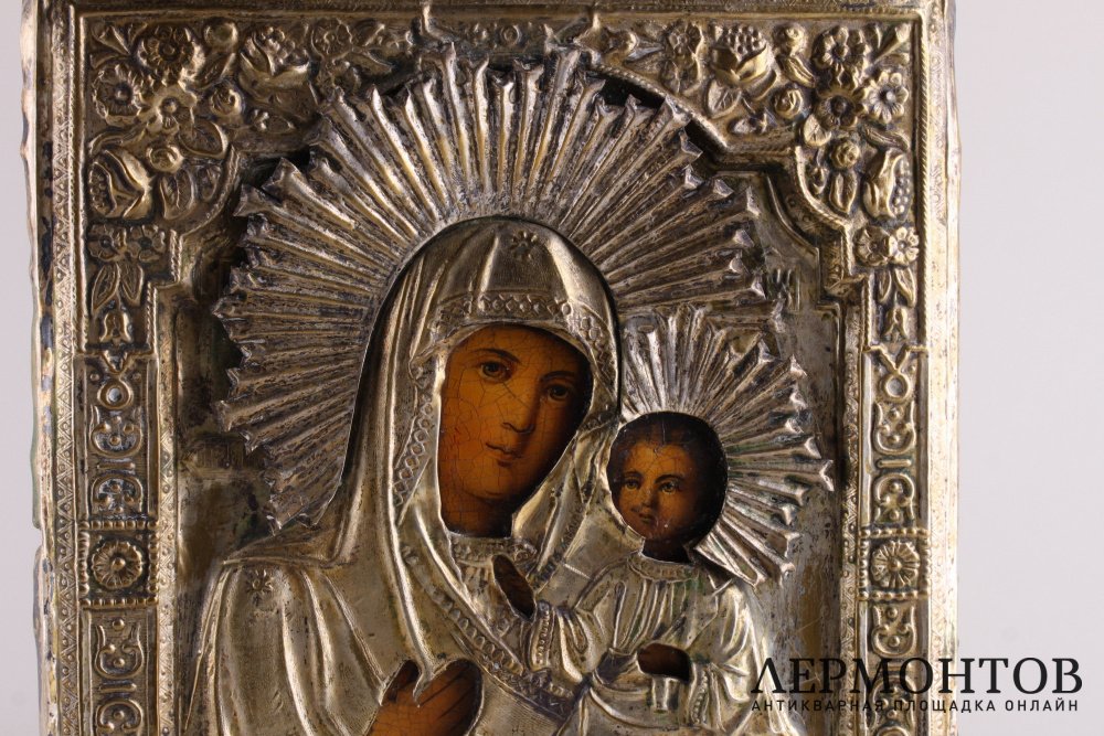 Икона Богородицы Иверская. Латунный оклад. Россия, до 1917 года.