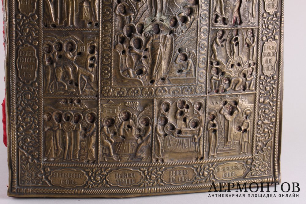 Икона Двунадесятные праздники  в латунном окладе. ХIХ в.