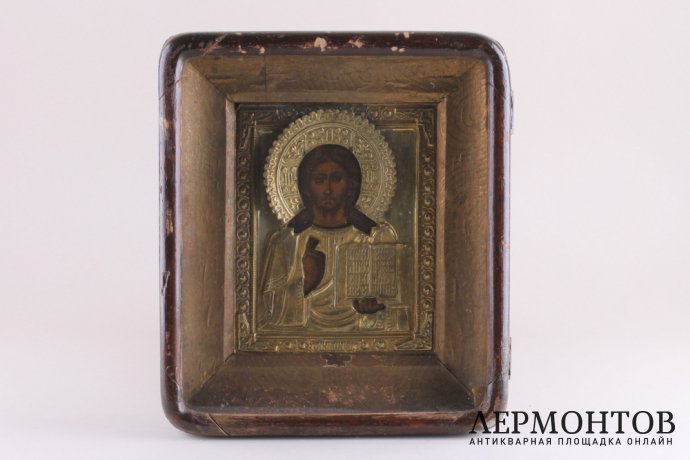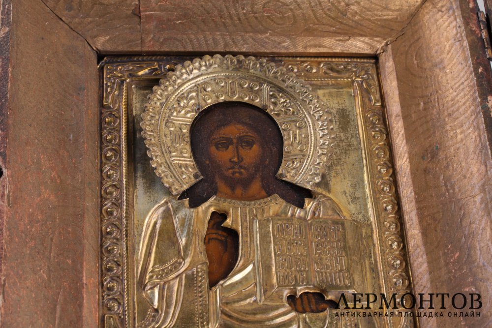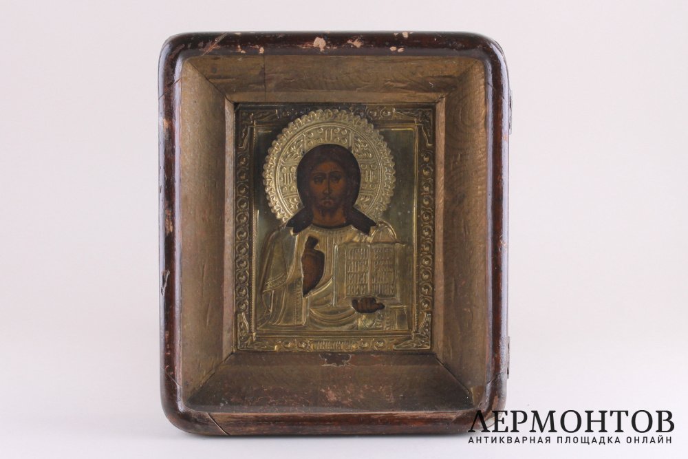 Икона "Господь Вседержитель" в латунном окладе. Россия, до 1917 г.