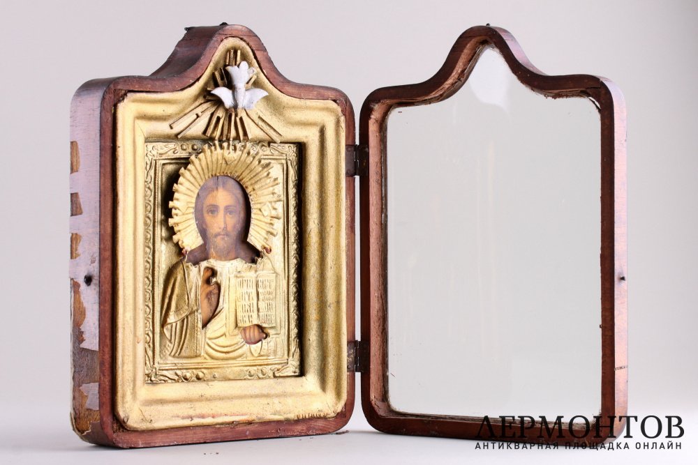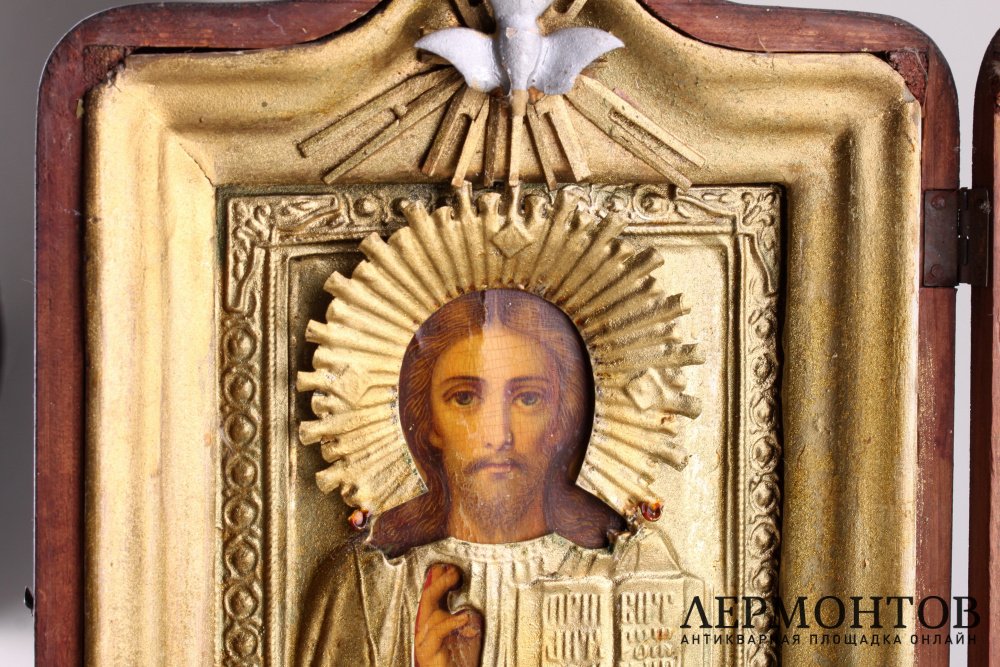 Икона "Господь Вседержитель" в латунном окладе в киоте. Россия, до 1917 года.