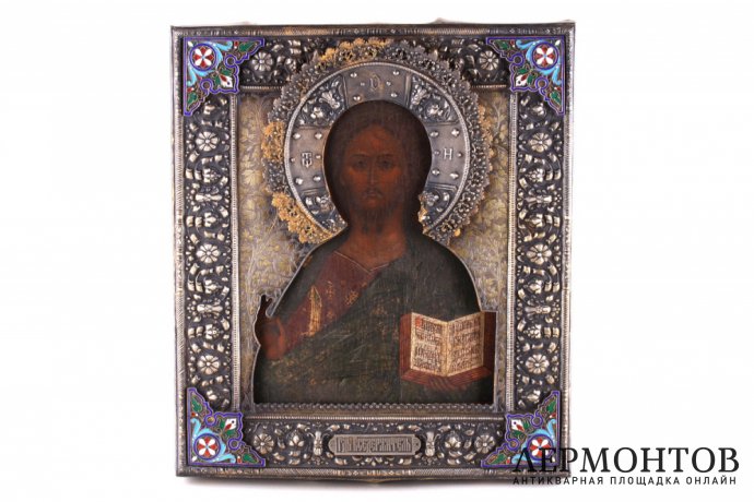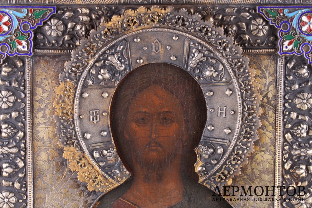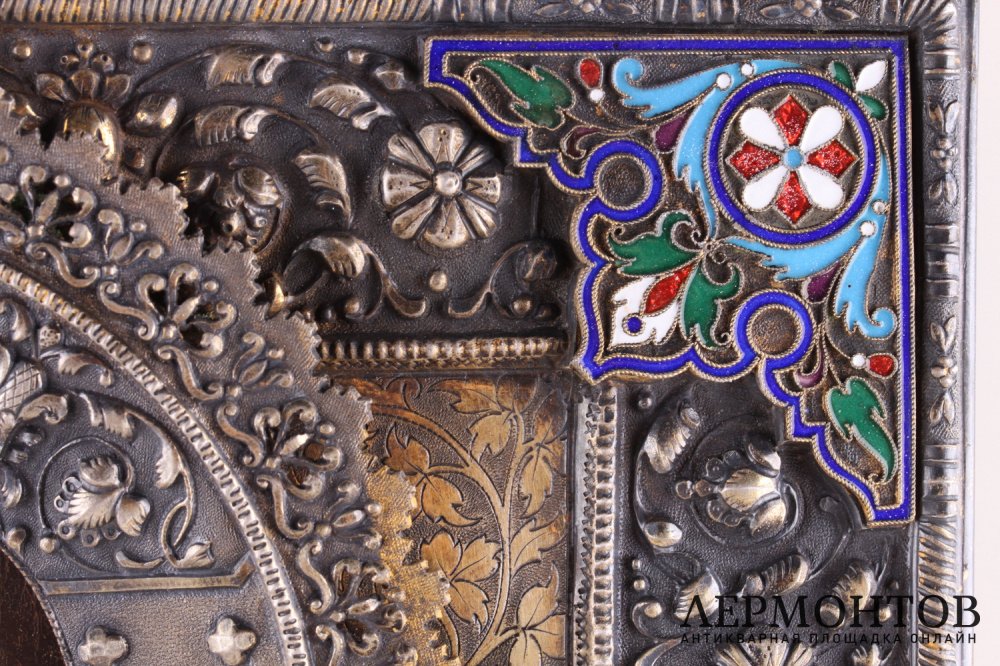 Оклад: серебро 84 пробы, полихромная эмаль по скани, золочение, чеканка. Российская империя, мастерская Семена Казакова, Москва, 1908-1917 годы.