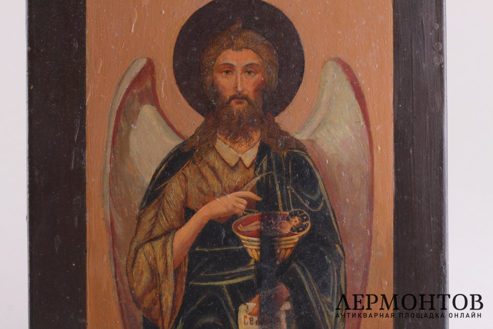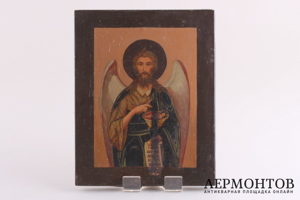 Икона Иоанна Крестителя. Письмо по металлу. Следы от огня. Деревянная доска. 18х22 см.