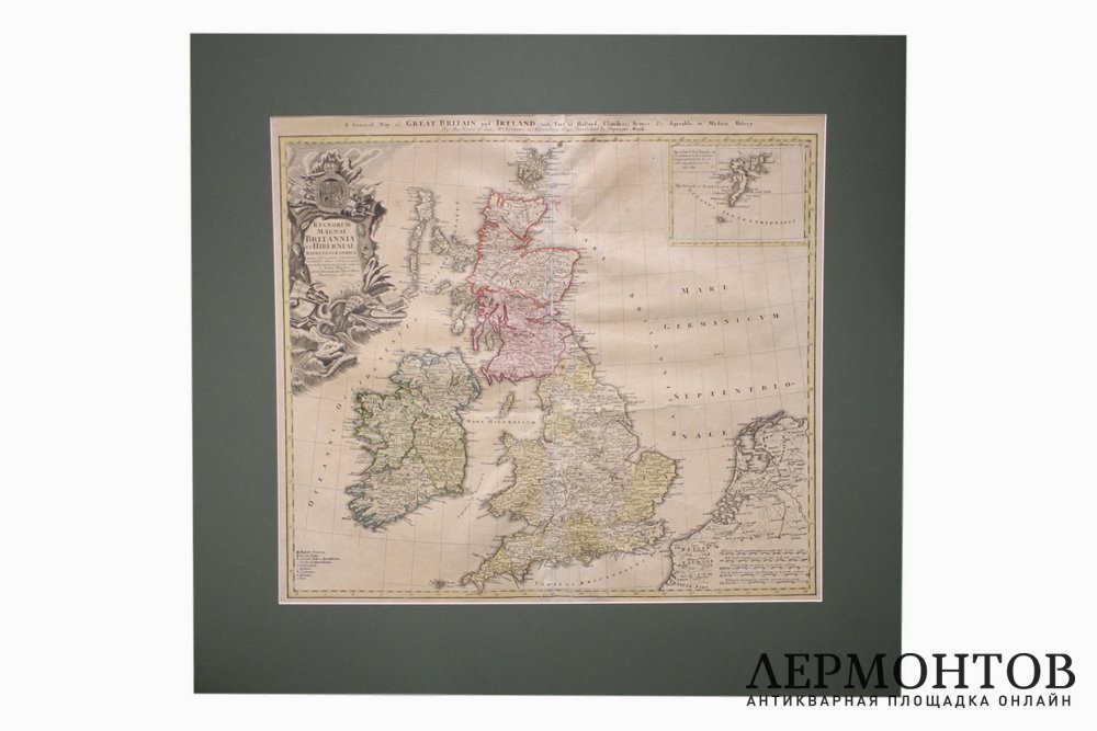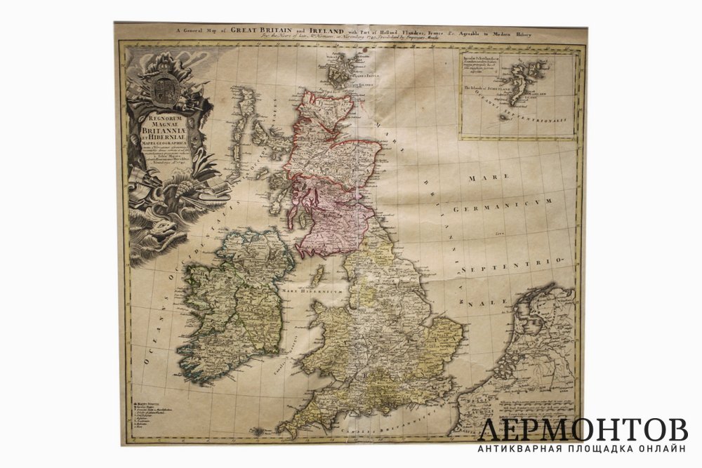 Старинная карта "Королевство Великобритании и Ирландии". ("Regnorum Magnae Britanniae et Hiberniae")