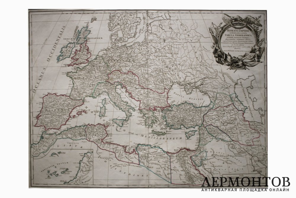Старинная карта "Римская империя. Запад и Восток". ("ROMANI IMPERII occidentis scilicet et orientis, TABULA GEOGRAPHICA")