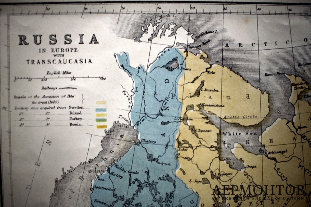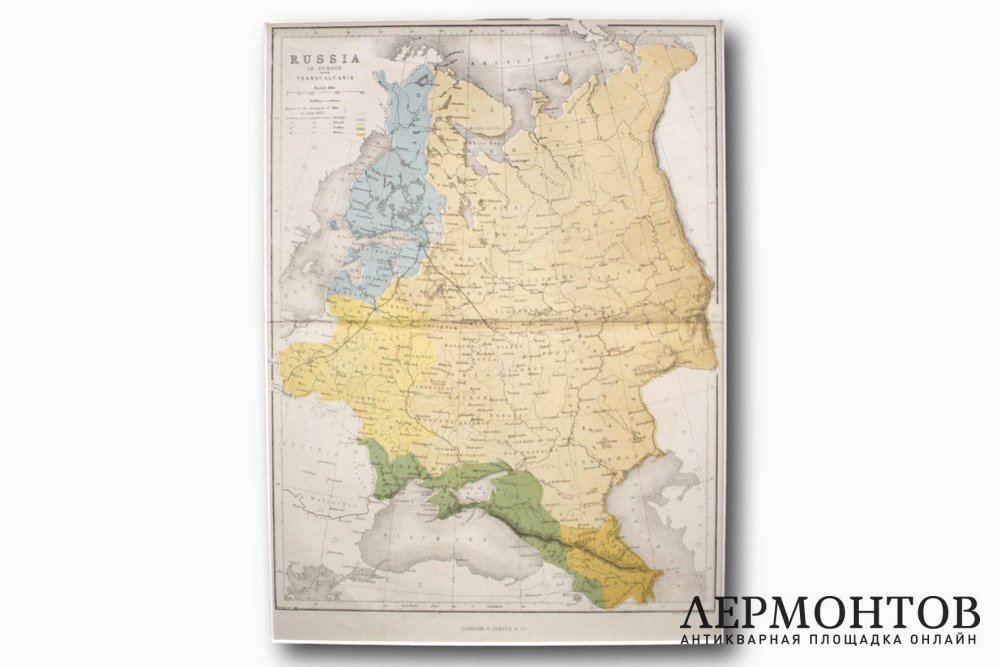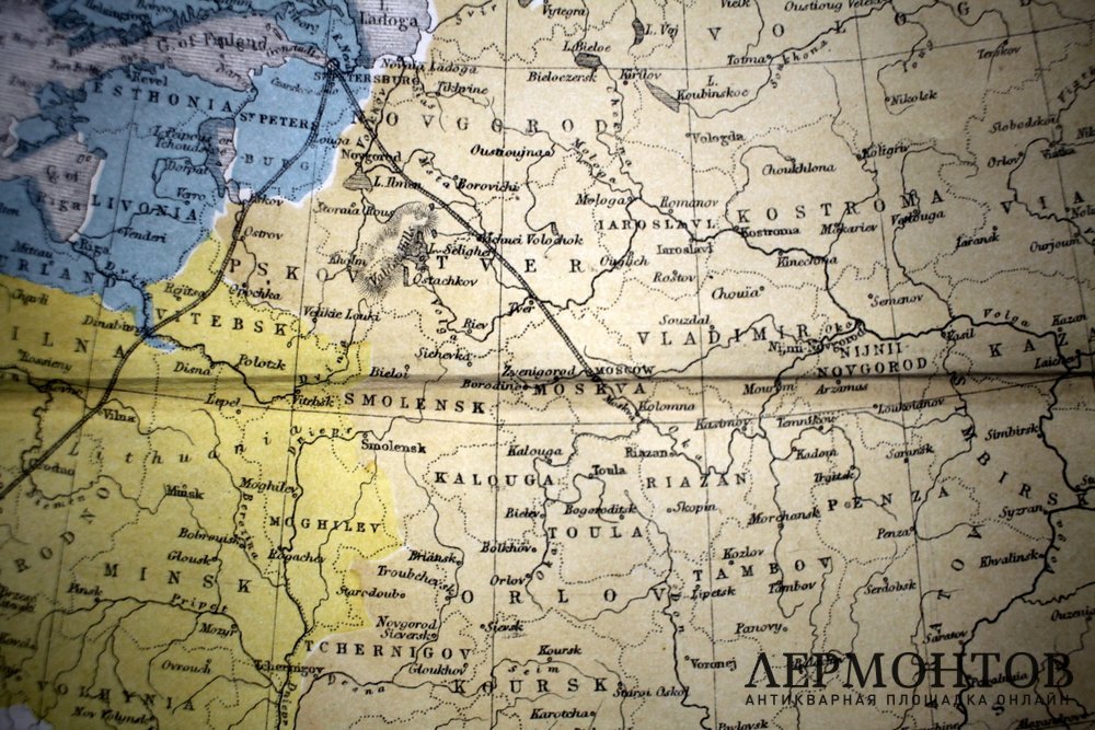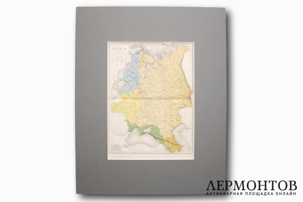 Старинная карта Российской империи XIX века, изготовленная в Англии в Лондоне в 1860-х годах в технике гравюры на стали с ручной акварельной подкраской.
