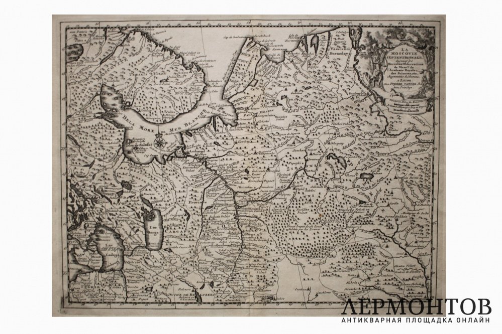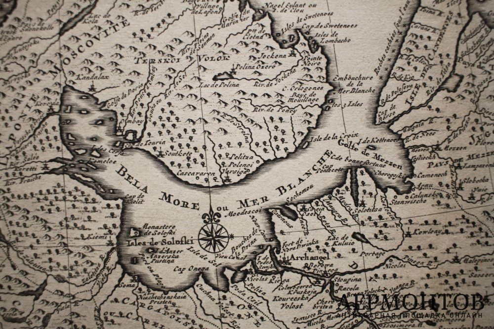 Старинная карта "Север Европейской части России". ("La Moscovie septentrionale..").
