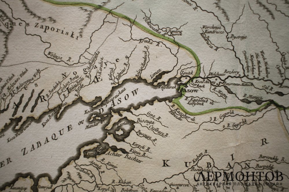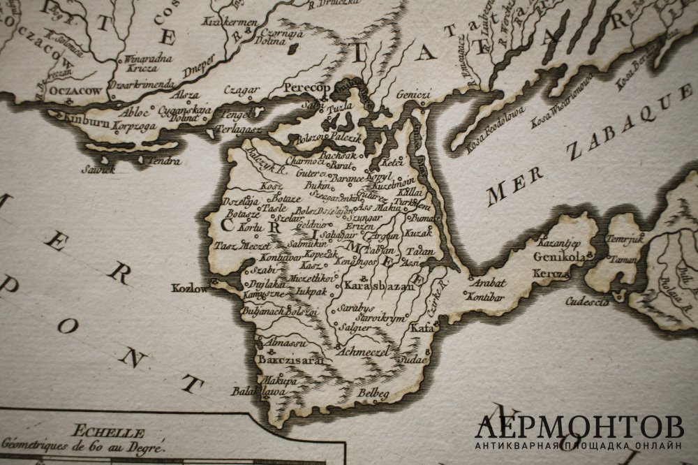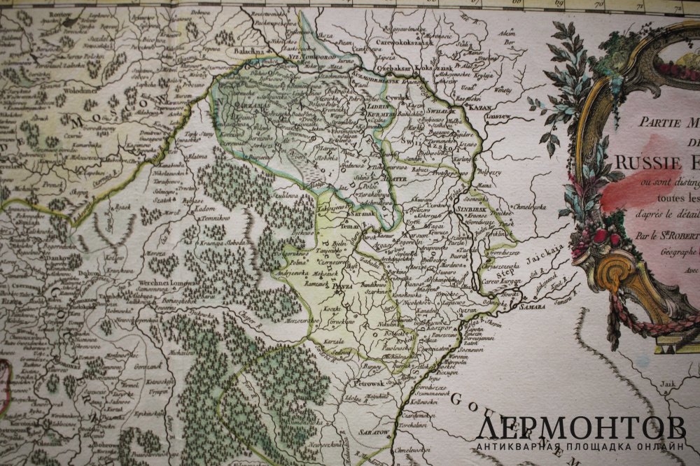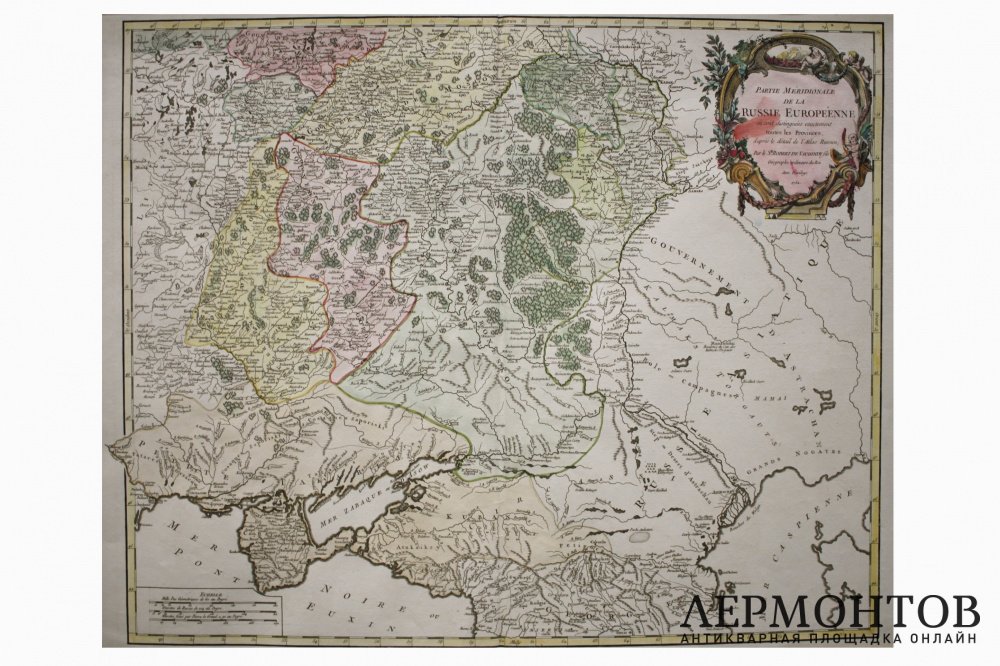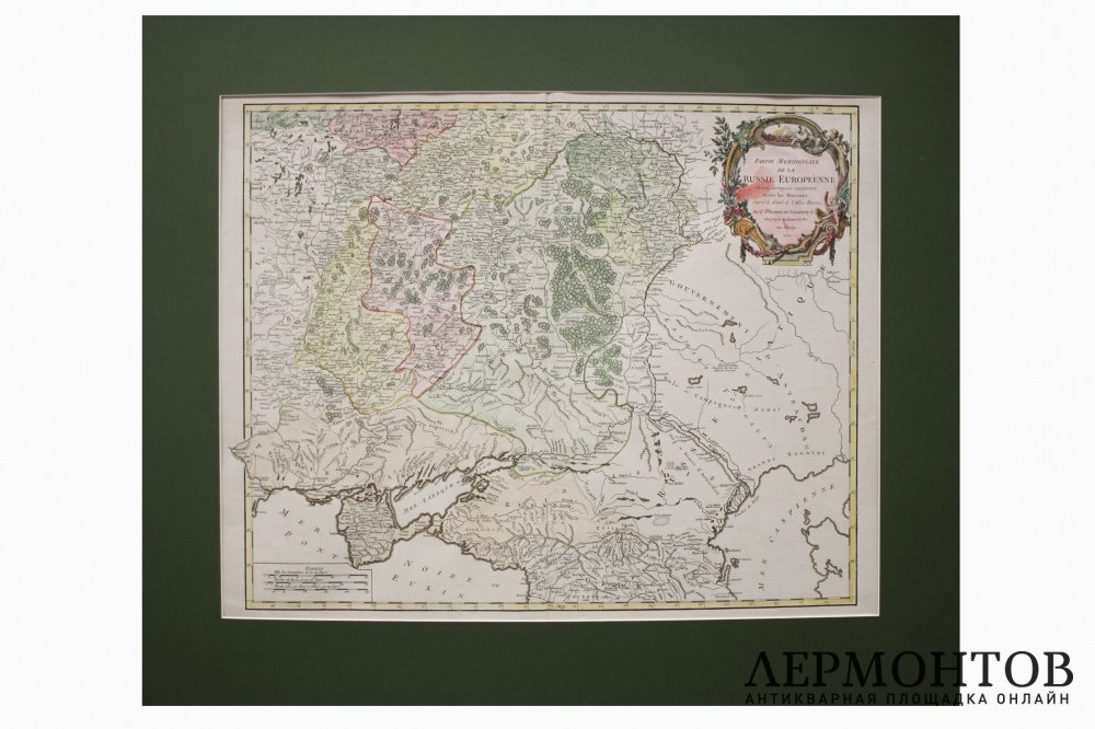 Старинная карта "Карта Европейской части России" ("Partie méridionale de la Russie européenne où sont distinguées exactement toutes les provinces, d'après le détail de l'Atlas Russien / par le Sr. Robert de Vaugondy fils".)