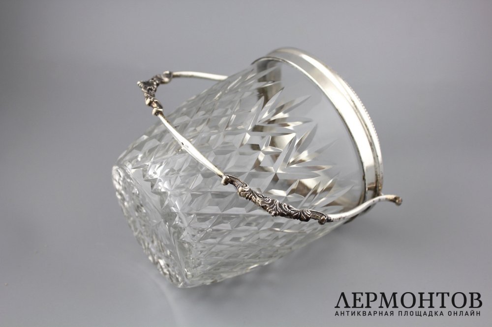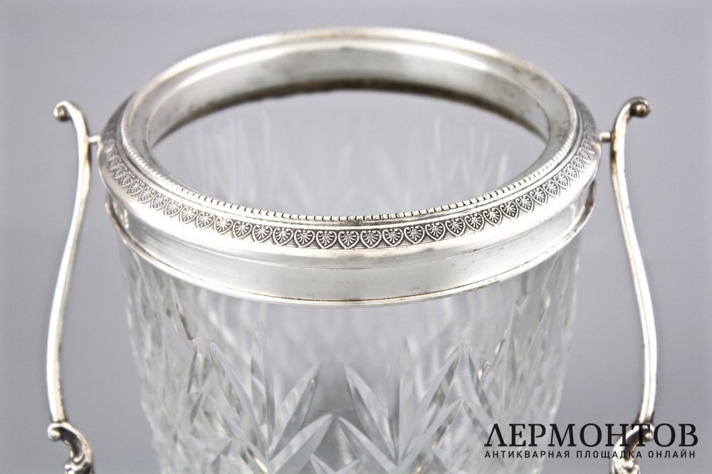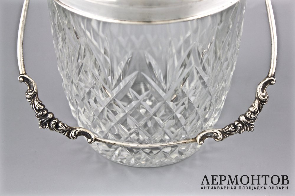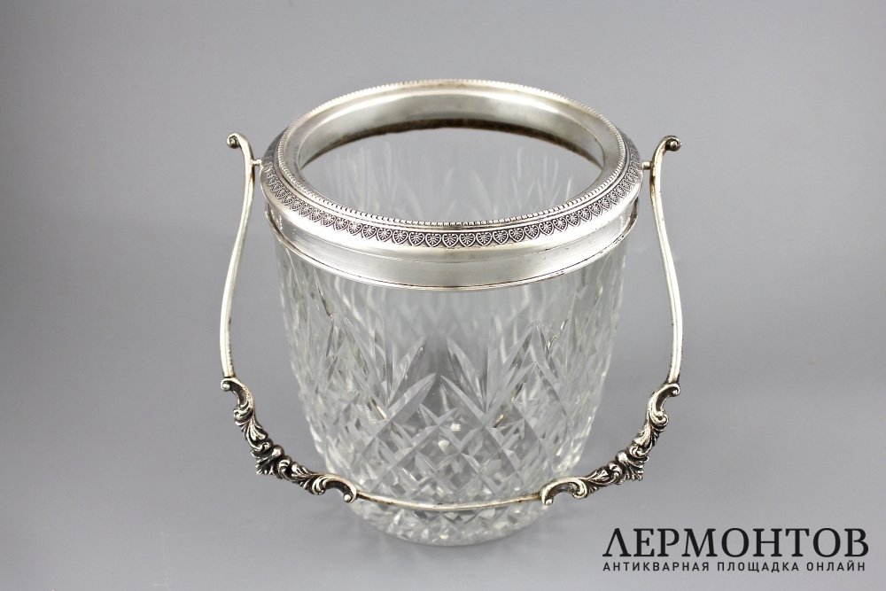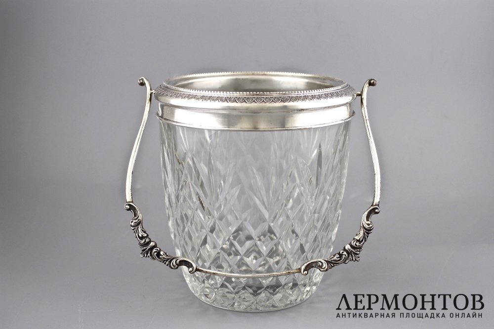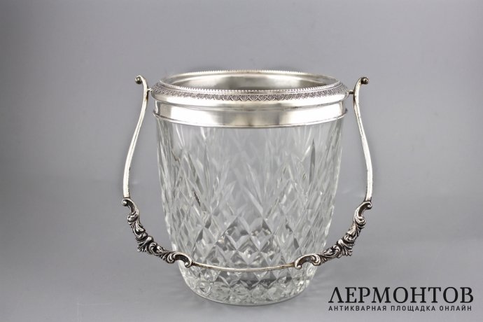 Хрустальное ведерко для льда в серебряной оправе.