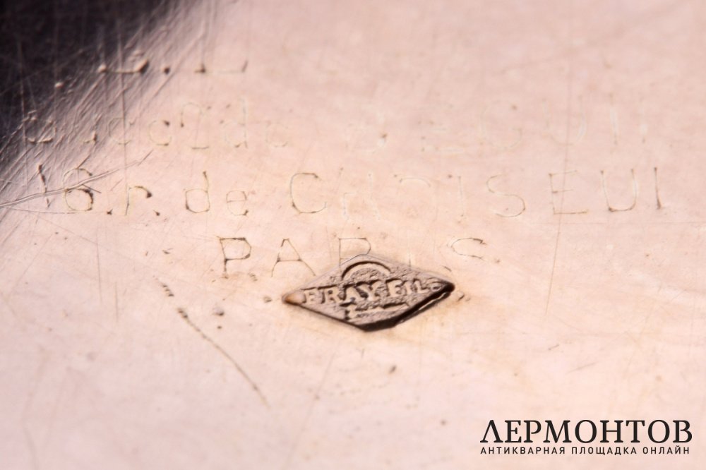 Обращаем ваше внимание на то, что изделие выполнено из серебра 950 пробы, о чем свидетельствуют французкие пробирные клейма - "Минерва с титром 1", а также экспертная оценка. Именник мастерской "Fray Fils" в ромбовидном щитке.