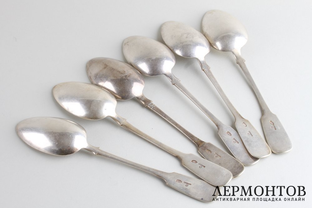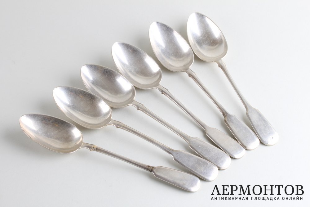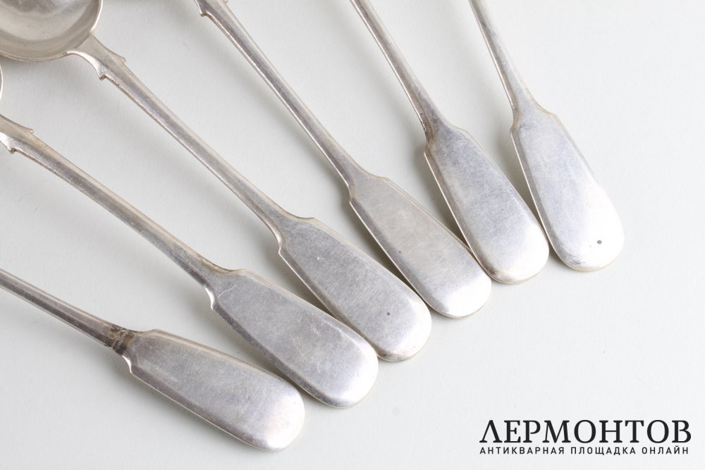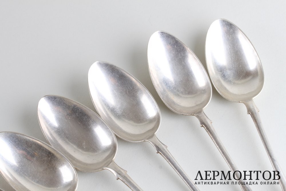 Комплект столовых ложек из серебра 84 пробы, изготовленный в Российской империи в Москве в мастерской поставщика императорского двора Ивана Хлебникова в период между 1908 и 1917 годами. Всего в комплекте шесть ложек. Предметы сохранены в очень хорошем состоянии.