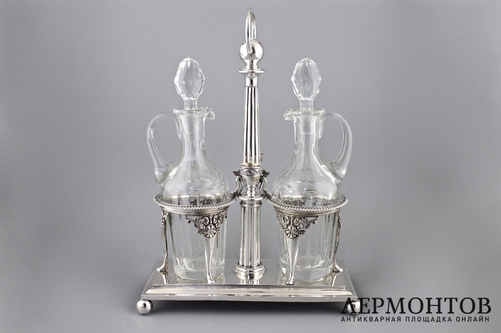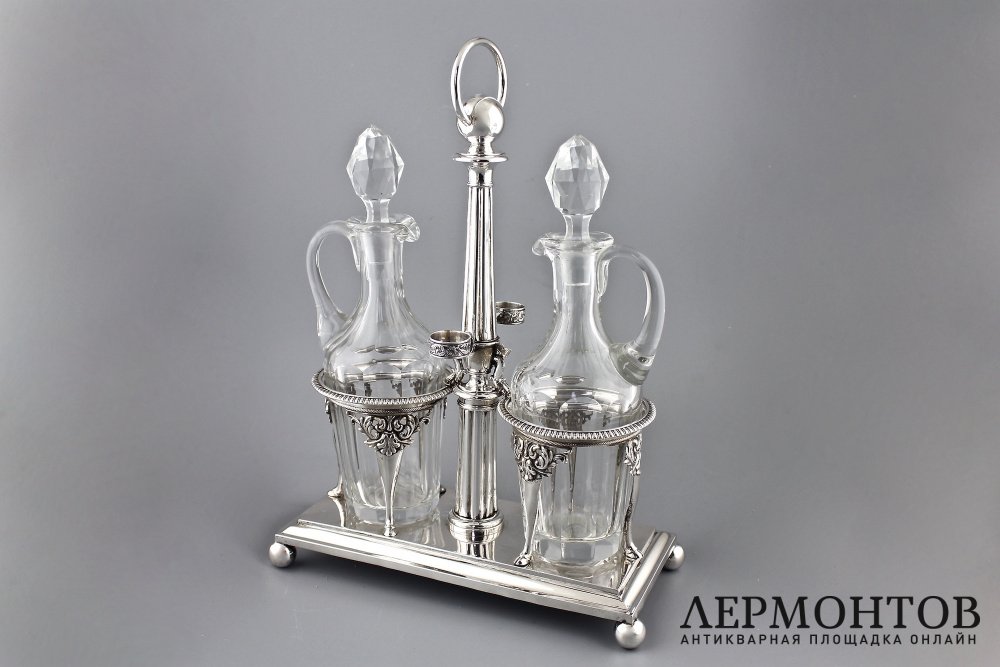 Старинный круэт в серебряной подставке.