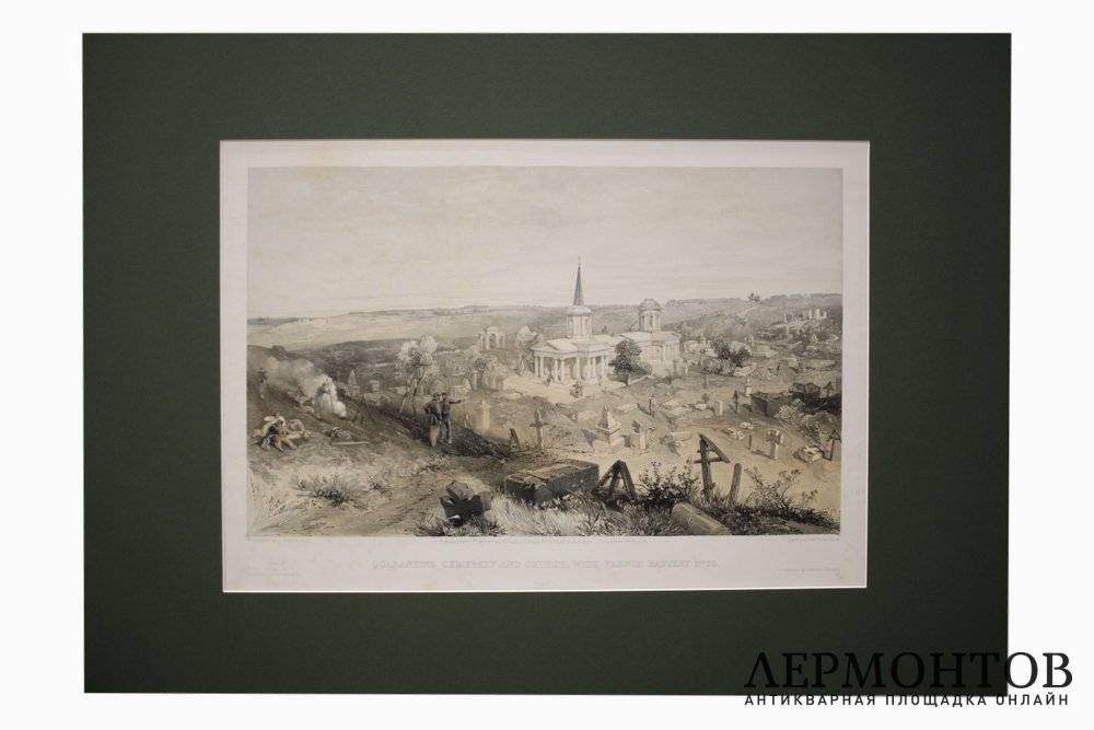 Литография "Карантинное кладбище и церковь близ позиций французской артиллерийской батареи № 50 под Севастополем " (Quarantine Cemetery and Church with French Battery №50).