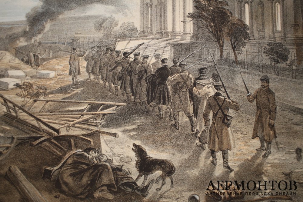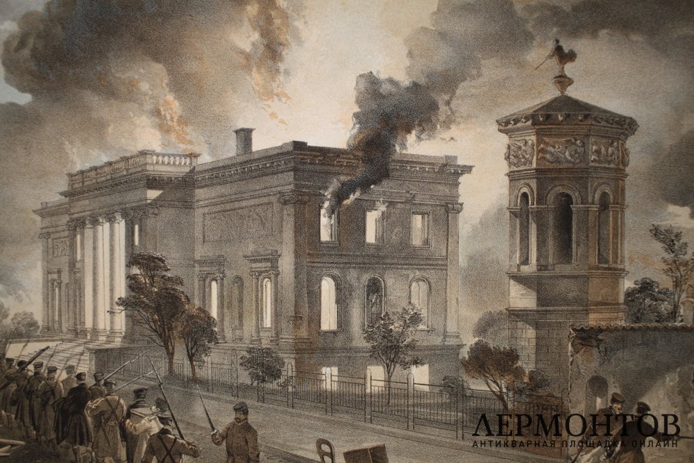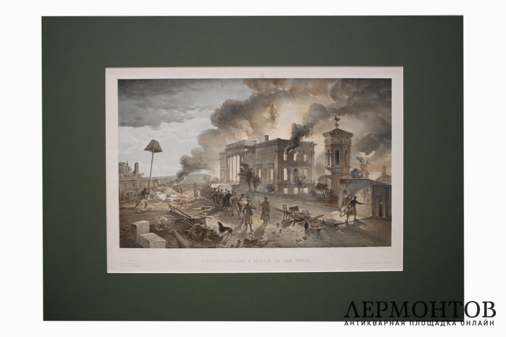 Литография "Пожар в публичной библиотеке города Севастополя в день захвата города союзными войсками 30 августа 1855 года" (Public Library and Temple of the Winds).