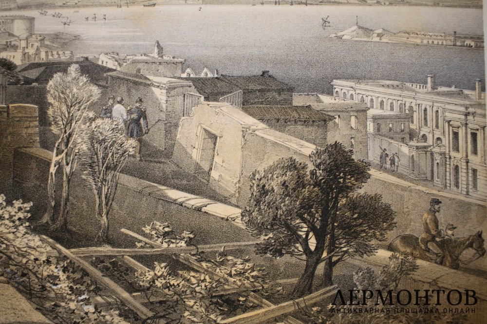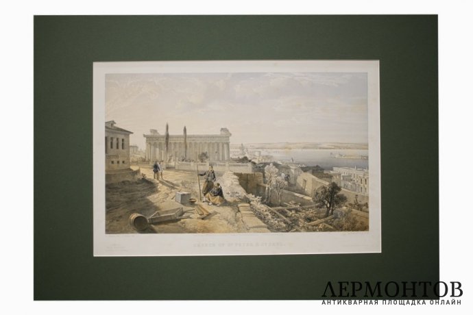 Литография "Сентябрь 1855 года. Вид на Севастопольскую бухту и руины церкви святых Петра и Павла" (Church of St Peter and St Paul).
