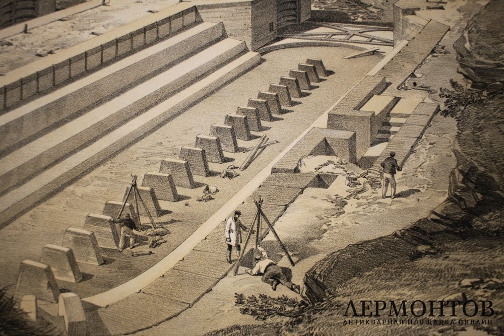 Литография "Вид на доки Севастополя и руины форта Святого Павла вскоре после захвата города союзниками" (Docks at Sebastopol with Ruins of St Paul).