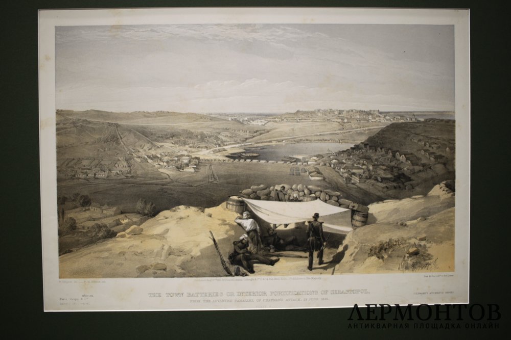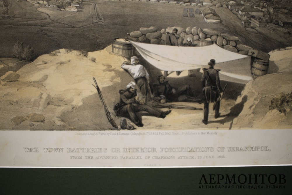 Литография "Вид на городские батареи Севастополя с аванпоста артиллерийской батареи Чэпмена 23 июня 1855 года" (The Town Batteries or Interior Fortifications of Sebastopol).