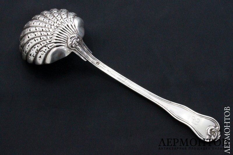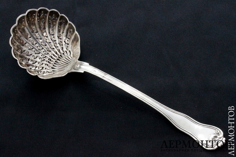 Красивая ложка для сахарной пудры, изготовленная из серебра 950 пробы во Франции в конце XIX века. Сохранена в хорошем состоянии!