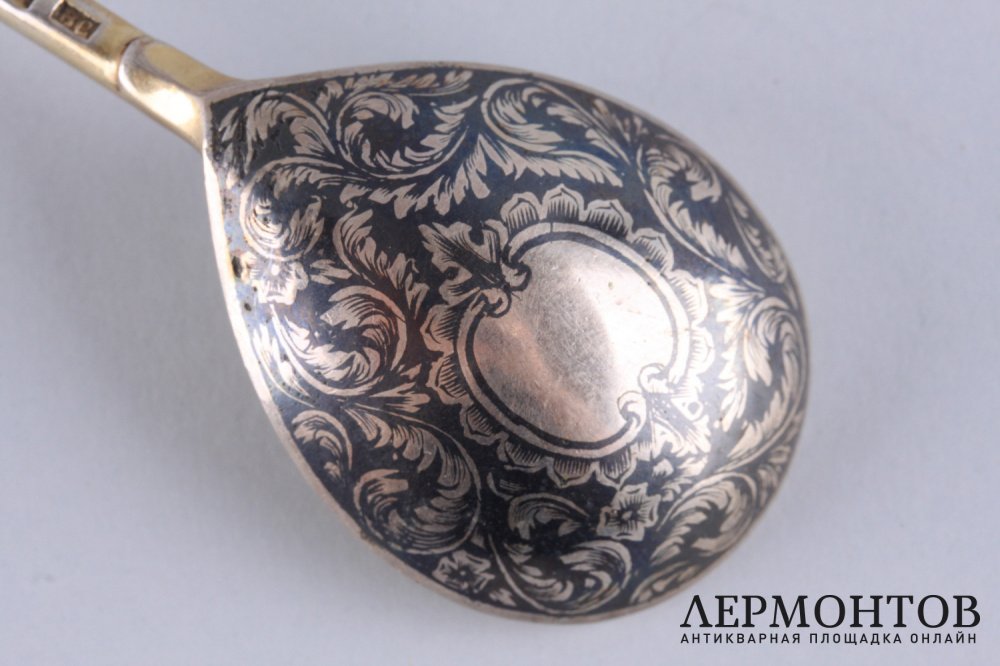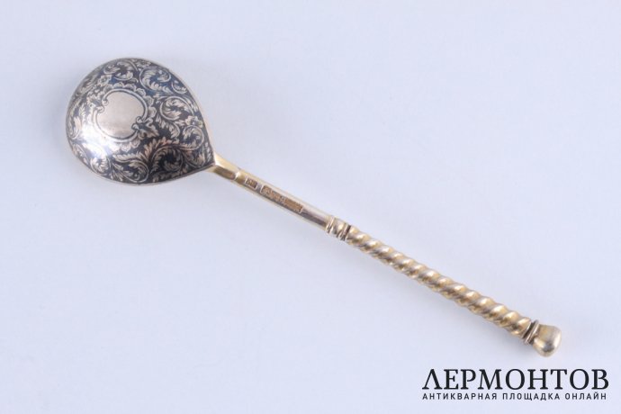 Антикварная ложка из серебра 84 пробы, изготовленная в мастерской Василия Семенова в Москве в 1864 году.