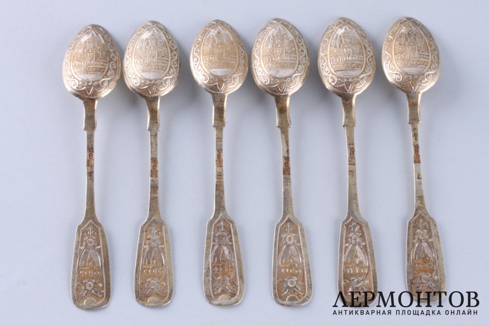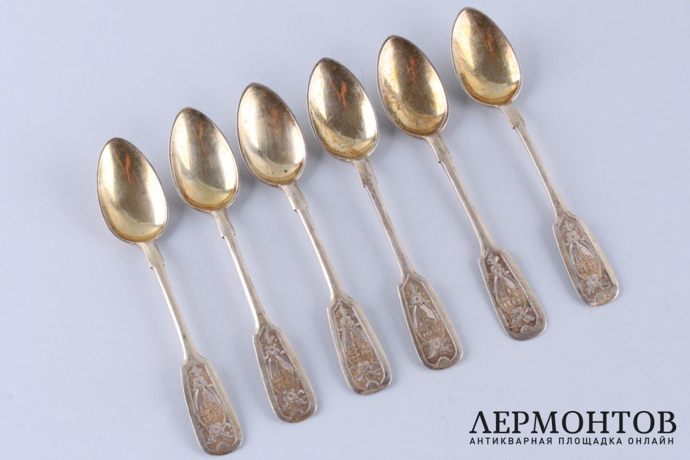 Ложки украшены узором с изображением храмов. Хорошая сохранность.