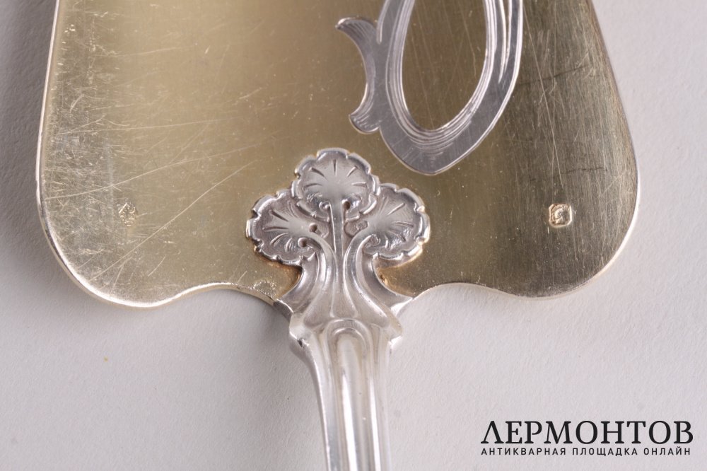 Обращаем внимание на то, что изделие выполнено из серебра 950 пробы, о чем свидетельствуют французские пробирные клейма ("Минерва с титром 1") и экспертная оценка. Именник мастерской - "H.Cie" в ромбовидном щитке.