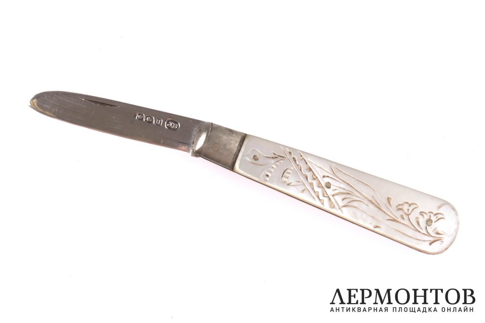 Складной нож, изготовленный из серебра 925 пробы в Англии в 1930 году. Ручка изготовлена из перламутра. Сохранен в хорошем состоянии. Замечательный подарок!