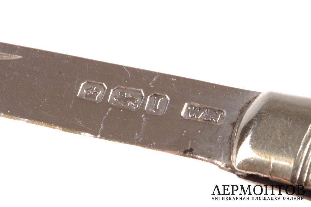 Складной нож, изготовленный из серебра 925 пробы в Англии в 1903 году. Ручка изготовлена из перламутра. Сохранен в хорошем состоянии. Замечательный подарок!