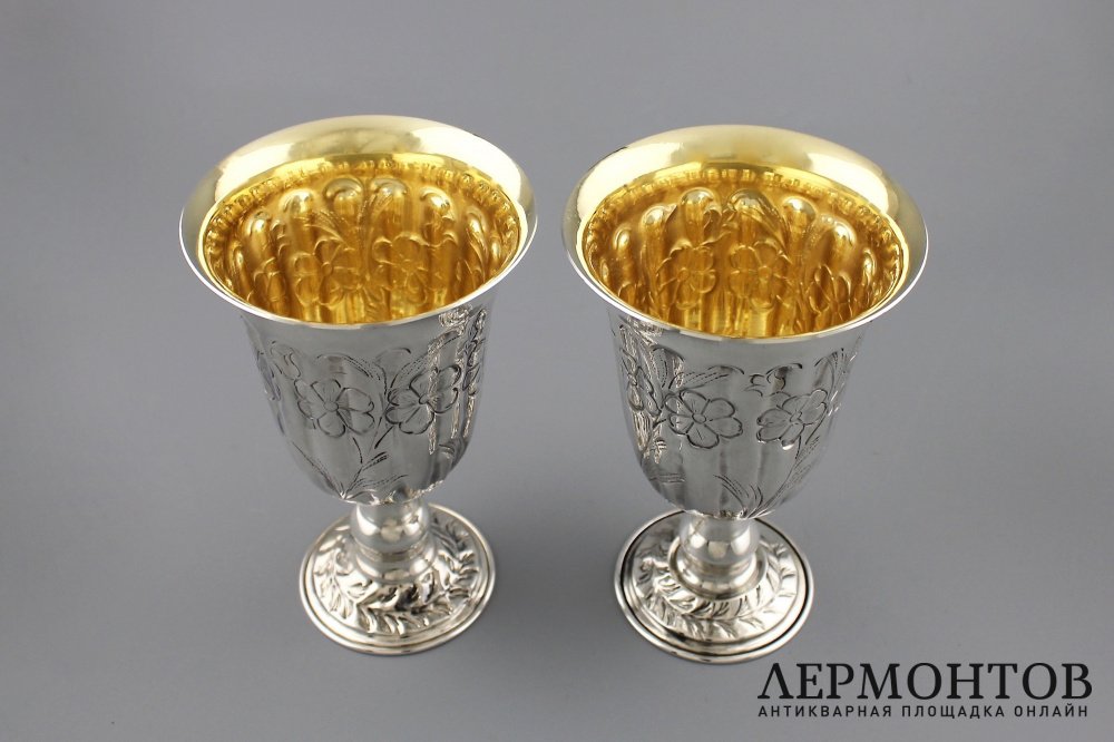 Парные серебряные бокалы. Золочение, гравировка.