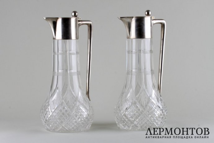 Парные антикварные графины для воды и вина, изготовленные из серебра 800 пробы и хрусталя в Германии в начале XX веков. Выполнены в классическом стиле. Сохранены в отличном состоянии.