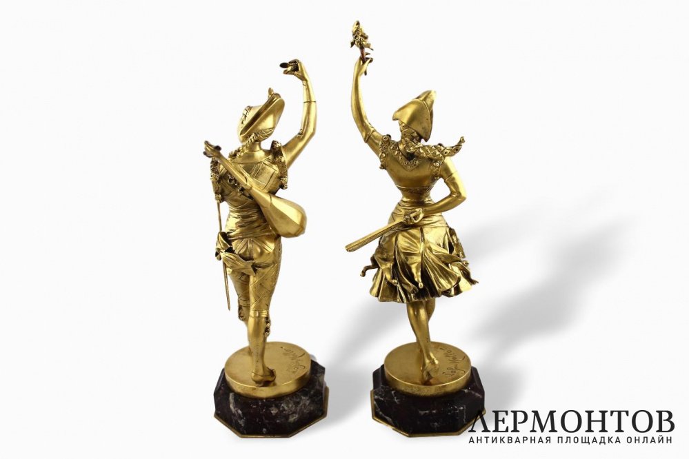 Редкие парные бронзовые скульптуры Арлекин и Коломбина. Франция, 1920-1930-e гг.