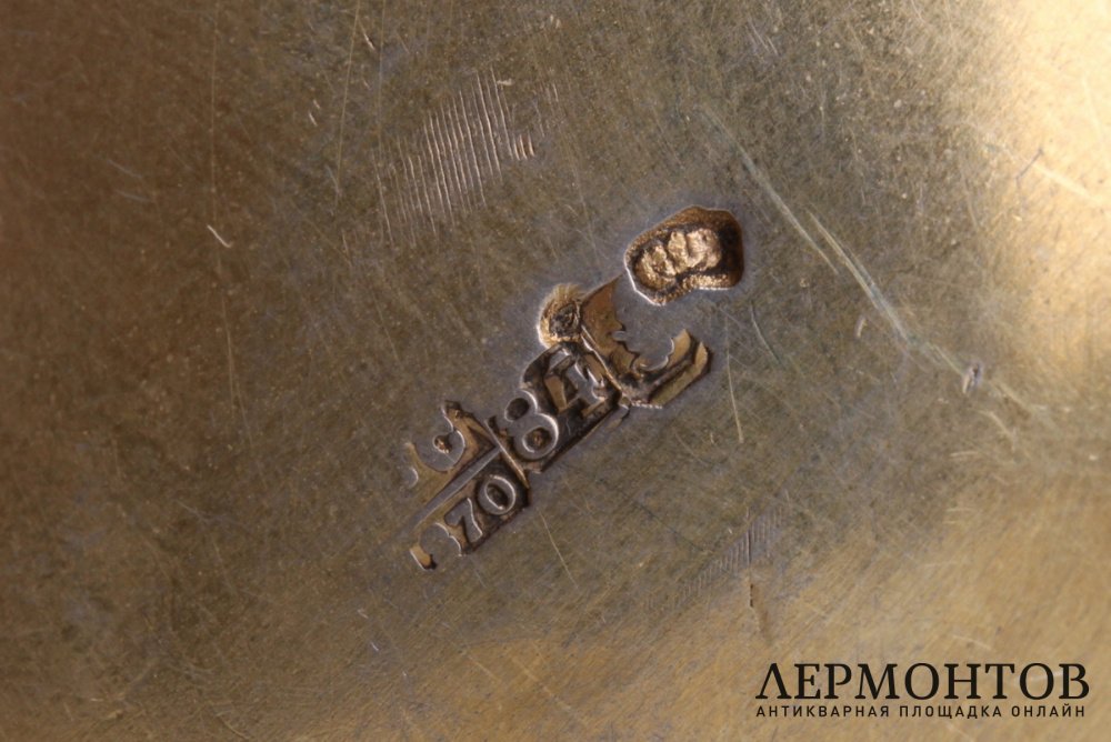 Клейма: пробирного управления Москвы с цифровым обозначением пробы "84" и указанием года "1870"; именник мастерской.