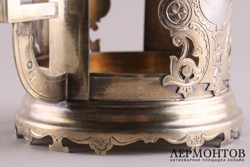 Обращаем ваше внимание на то, что изделие выполнено из серебра 84 пробы, о чем свидетельствуют клейма и экспертная оценка. Клейма: пробирного мастера "ВС" с годовым клеймом "1888"; цифровое обозначение пробы "84"; городское клеймо Москвы - "Всадник"; именник мастерской.