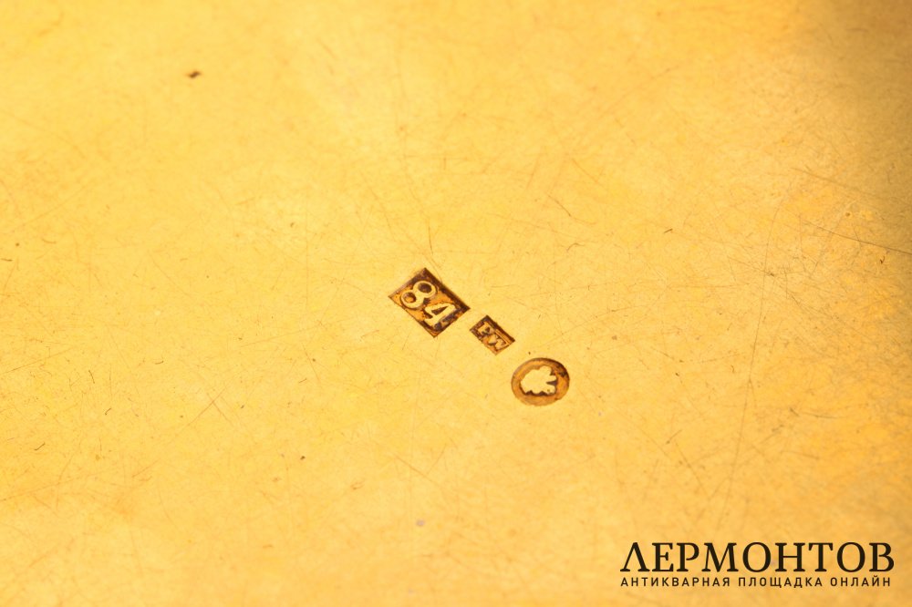 Обращаем ваше внимание на то, что изделие выполнено из серебра 84 пробы, о чем свидетельствуют клейма и экспертная оценка. Клейма: пробирное клеймо Санкт-Петербурга - "скрещенные якоря"; цифровое обозначение пробы "84"; именник мастерской "FW". На накладке подпись скульптора "Barye".