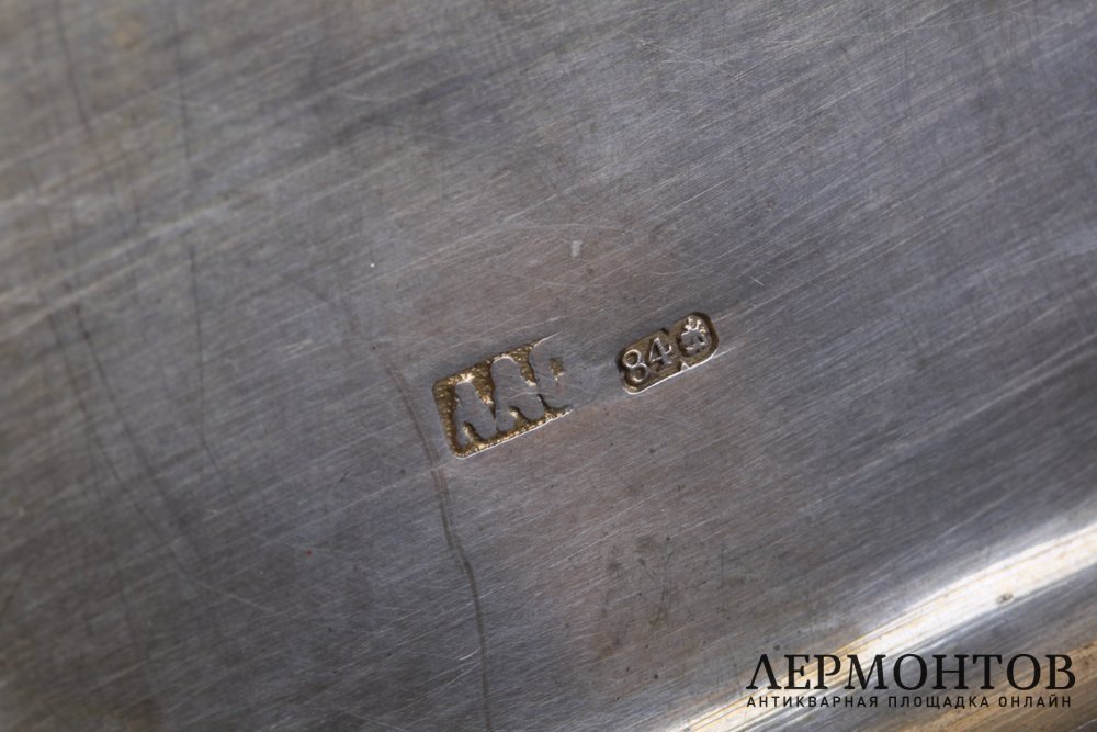 Обращаем ваше внимание на то, что изделие выполнено из серебра 84 пробы, о чем свидетельствуют клейма и экспертная оценка. Клейма: пробирное клеймо Москвы с цифровым обозначением пробы "84"; именник мастерской "ААС".