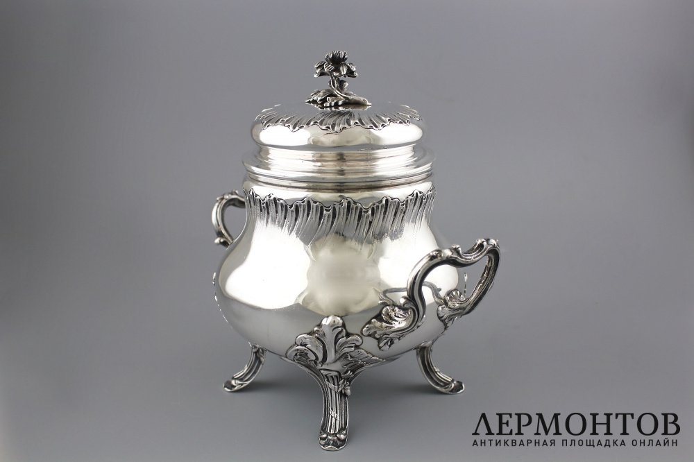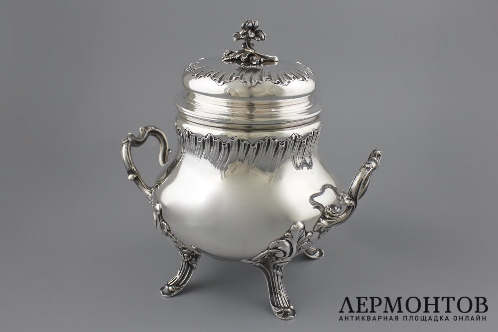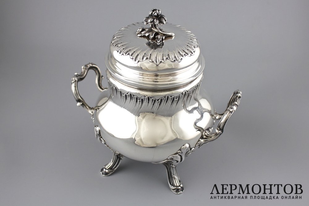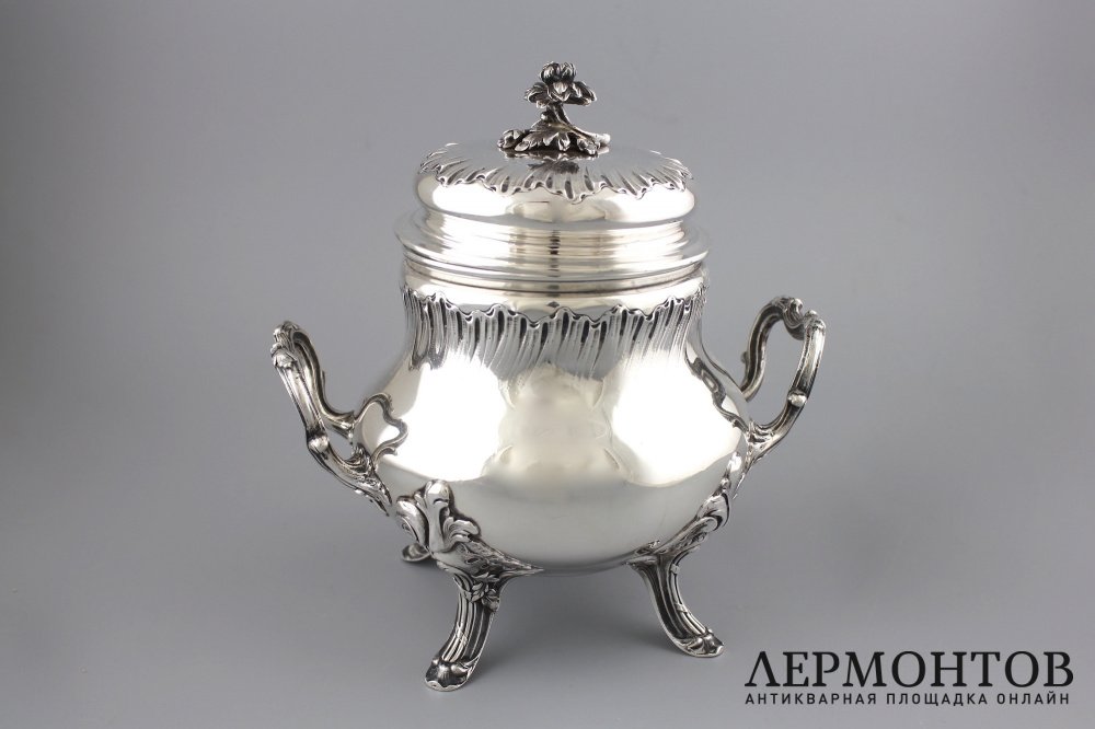 Антикварная серебряная сахарница.