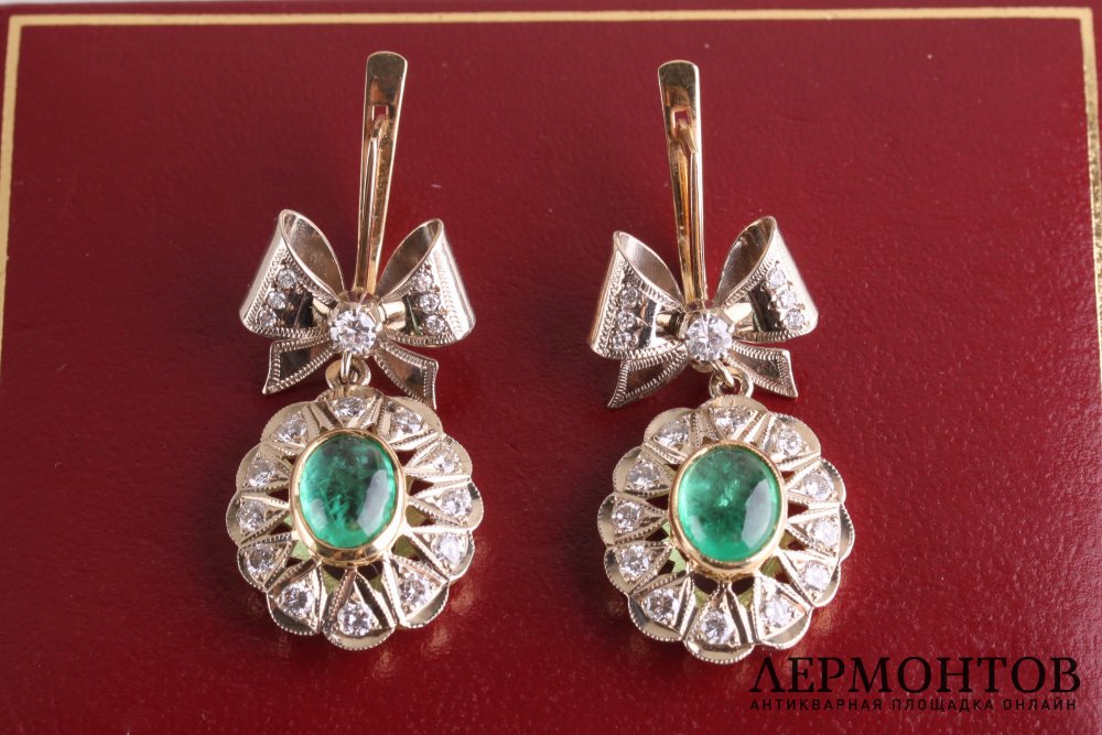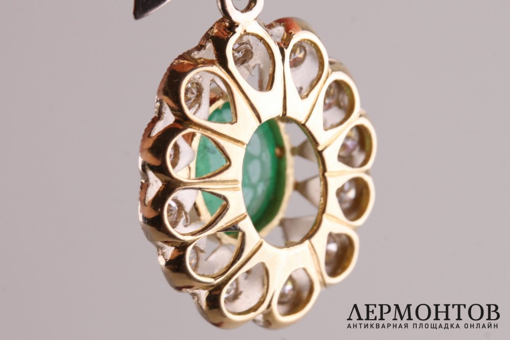 Изумруды: огранка - двояковыпуклый кабошон; цвет средне-зеленый (3); чистота K1 в закрепке. Общий вес - 4,7 карата.