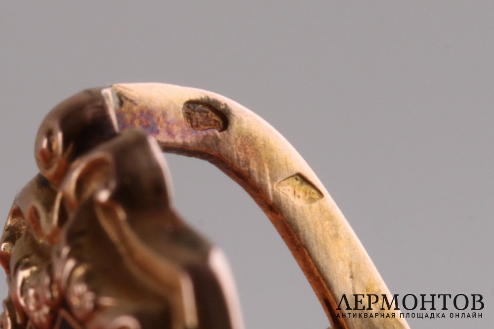 Обращаем ваше внимание на то, что изделие выполнено из золота 750 пробы, о чем свидетельствуют клейма и экспертная оценка. Клейма: французское пробирное клеймо "Голова орла" для золота 750 пробы; именник мастерской.