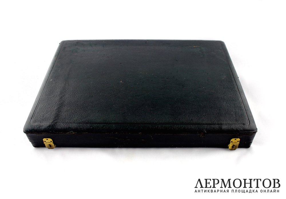 Резной сервировочный набор в оригинальном кожаном футляре.