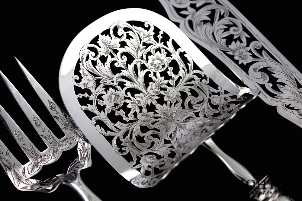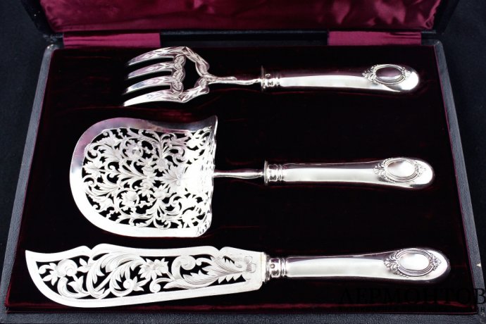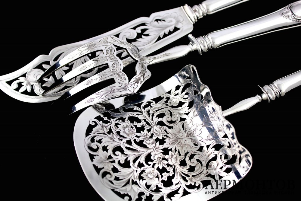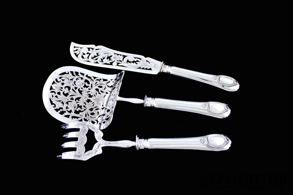 Сервировочный набор для салата DEBAIN. Серебро 950. Франция