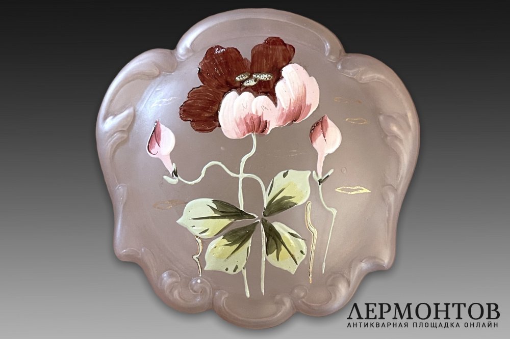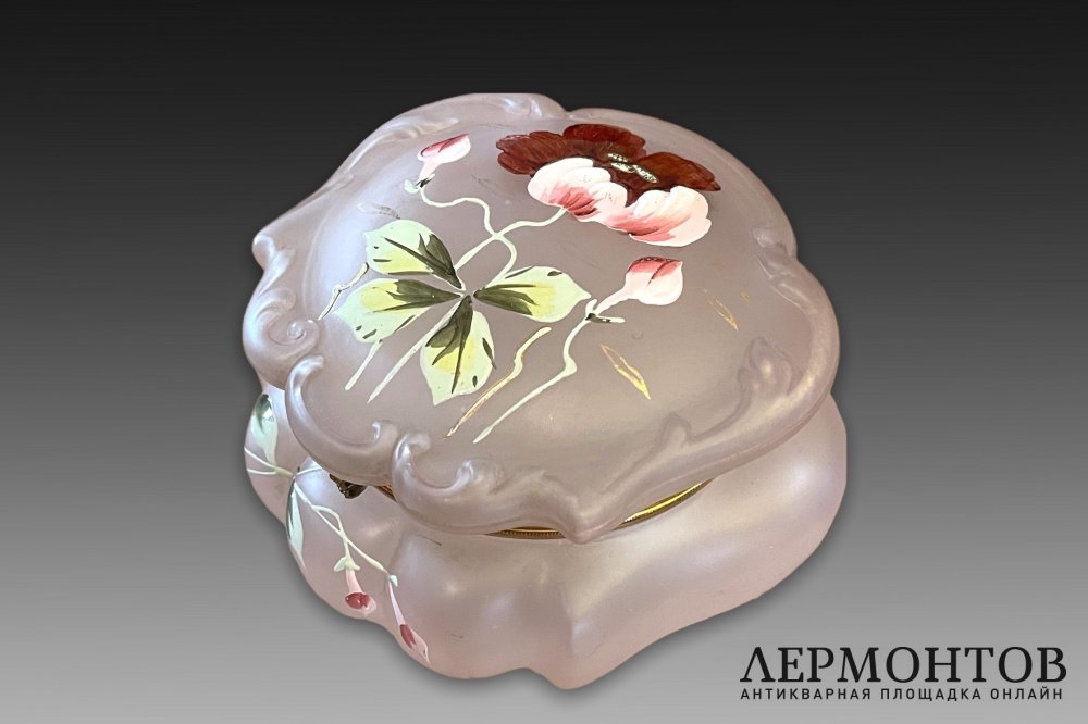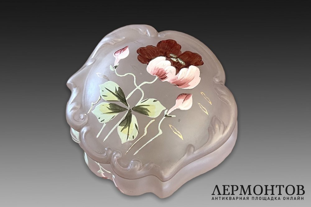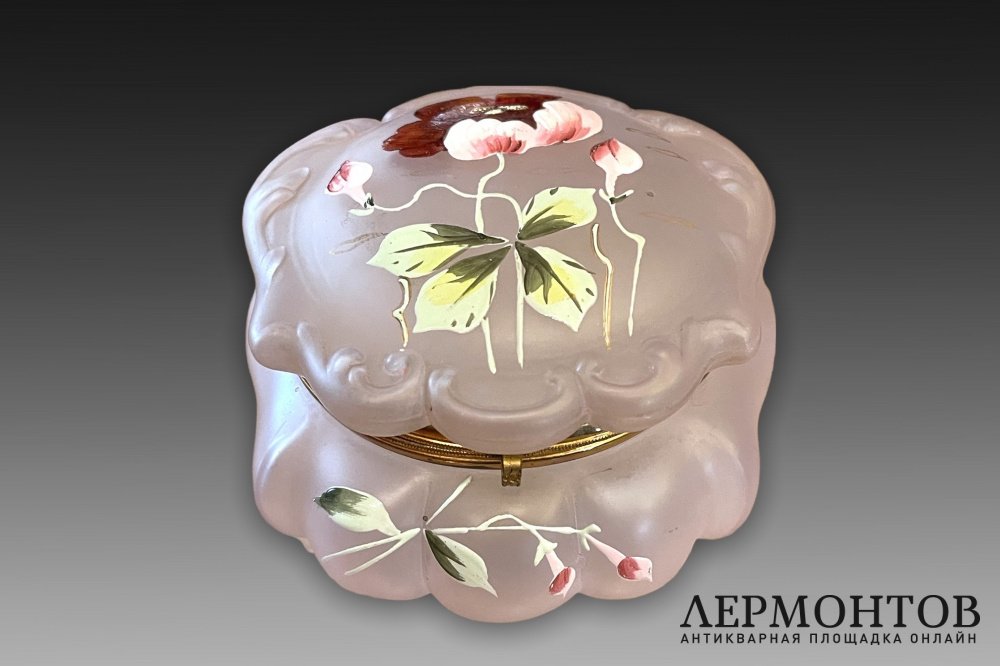 Старинная шкатулка в стиле Legras изготовлена из матового стекла цвета пудровой розы.