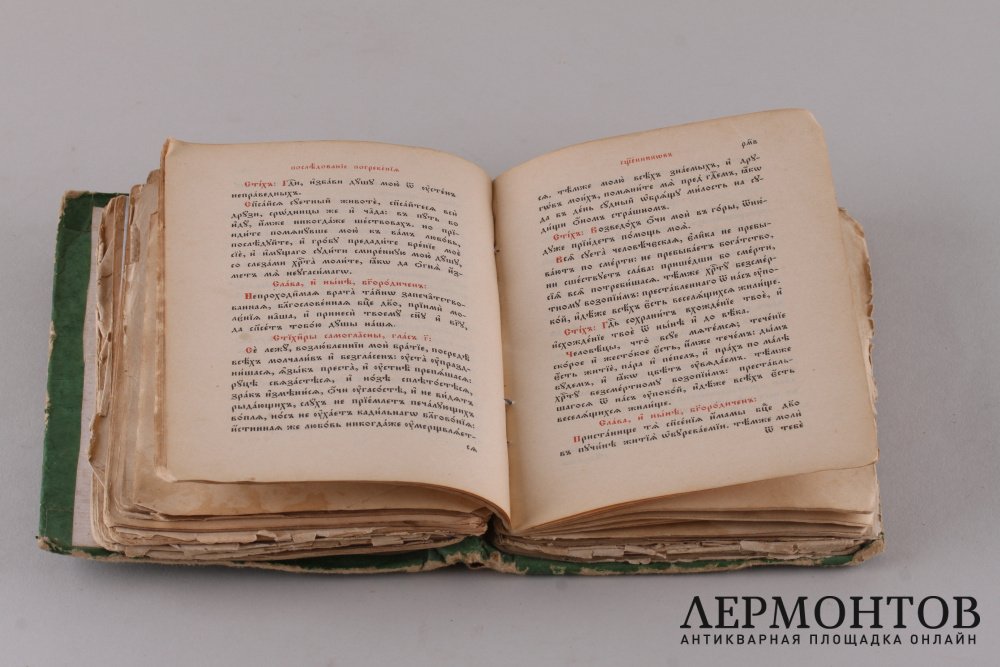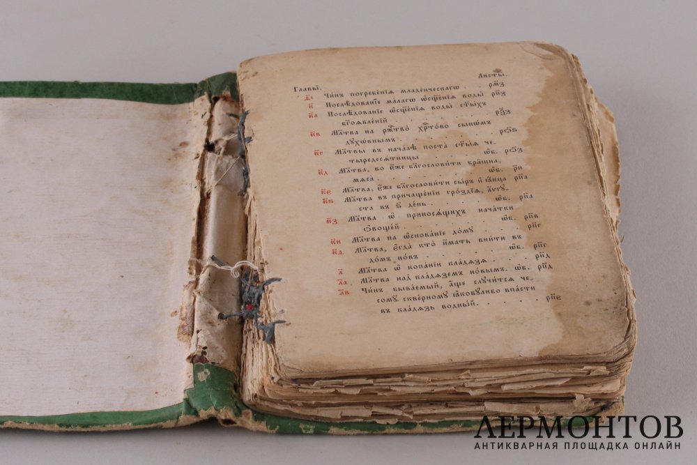 Требник. Дата выпуска, титульный лист, последние и первые страницы отсутствуют.Повреждения.